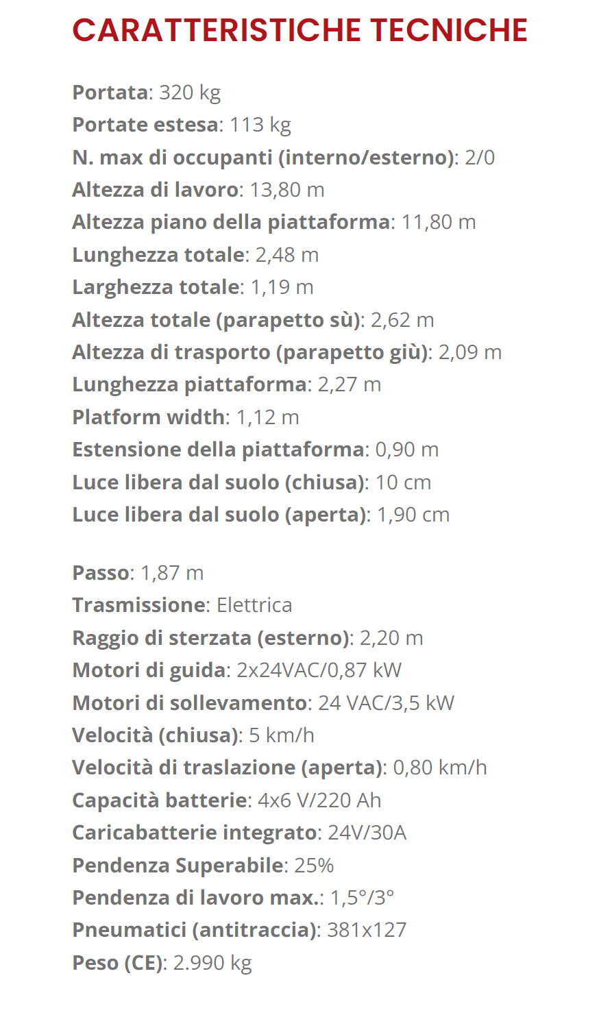 PIATTAFORMA VERTICALE ELETTRICA 220V ES-1412E – 14